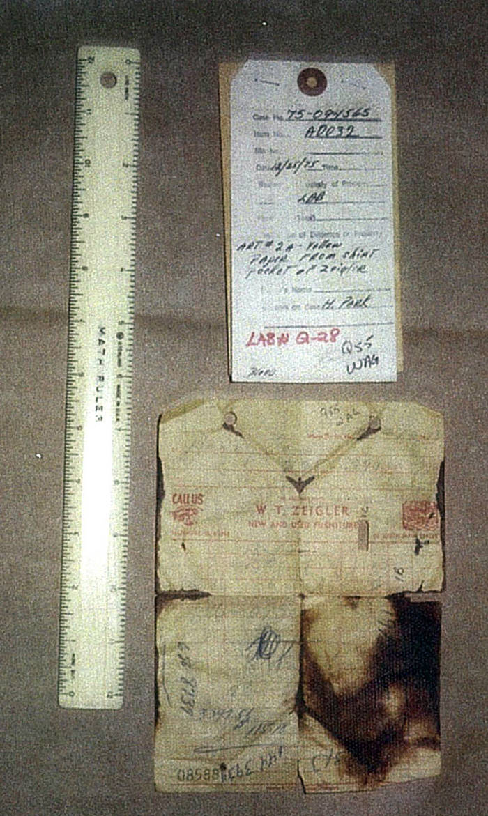The FBI’s footprint expert testified that Zeigler’s rippled-sole loafer did not produce the bloody print found on the terrazzo floor near Perry Edwards’ body. He said it was the wrong size. The expert was a defense witness, but he testified out of order so he could return to Washington D.C.
