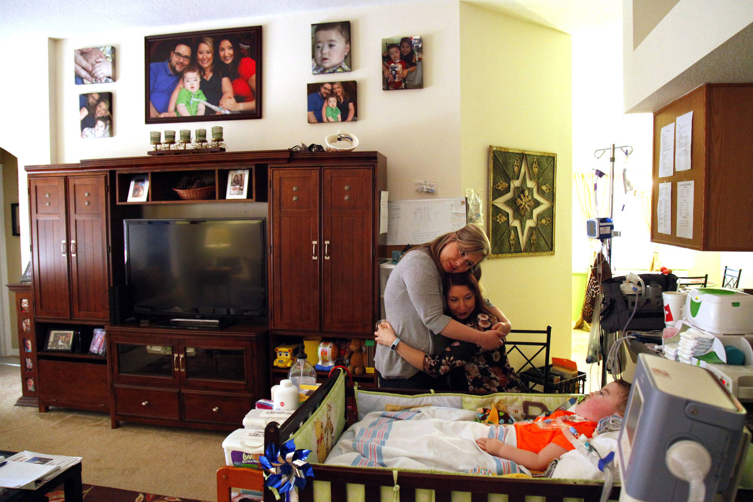 They left their front door unlocked for the stream of nurses and therapists, equipment specialists and UPS drivers. Their garage filled with boxes of trach tubes, surgical tape, oxygen tanks and powdered food.